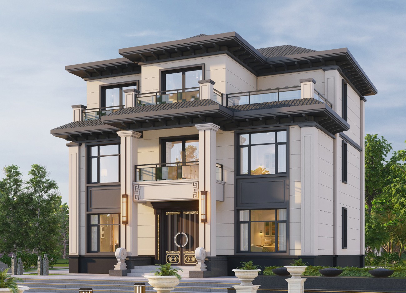 西昌17 三层新中式(10x12米)-【易设计】
